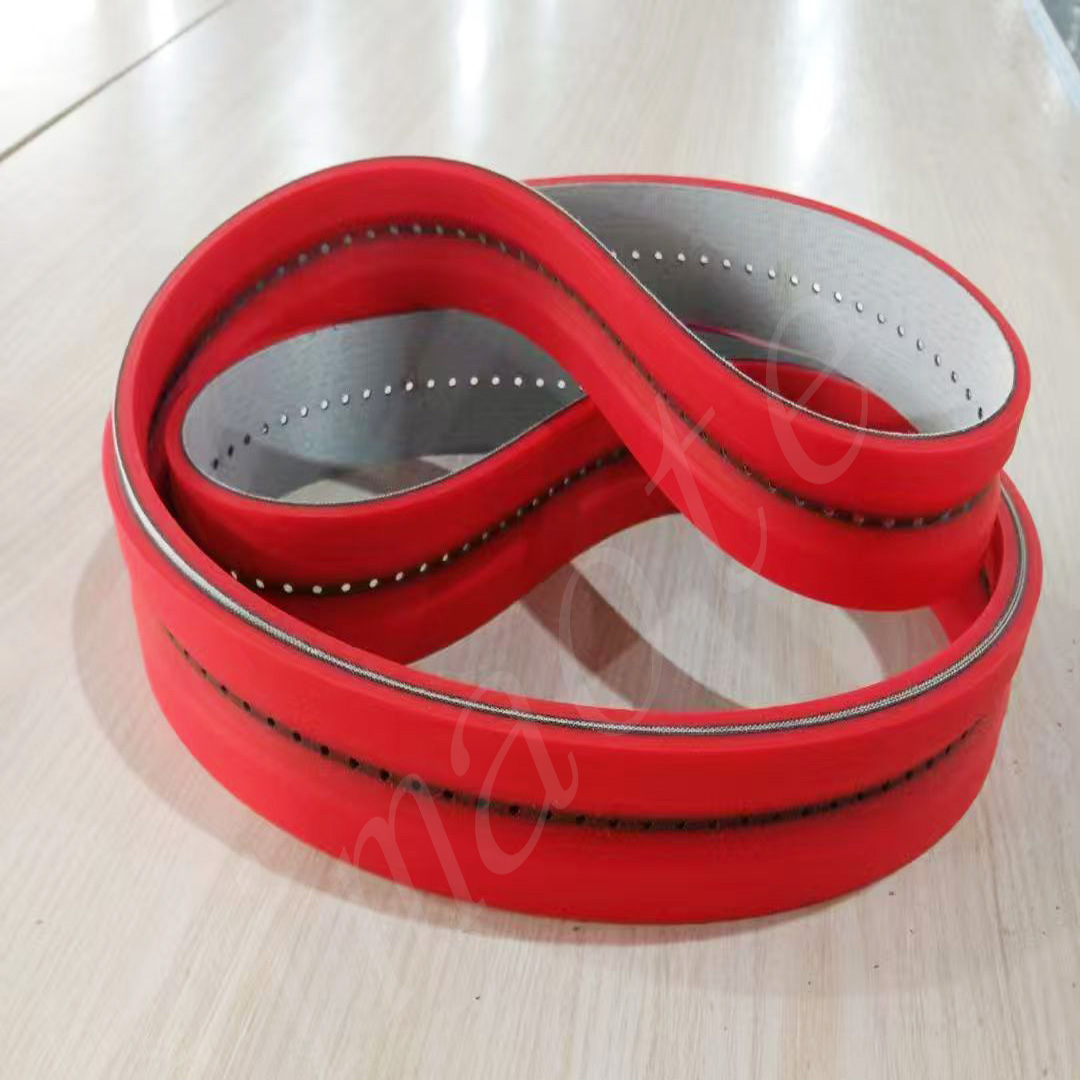 橡膠同步帶傳動是由一根內周表面設有等間距齒形的環(huán)行帶及具有相應吻合的輪所組成。它綜合了帶傳動、鏈傳動和齒輪傳動各自的優(yōu)點。轉動時,通過帶齒與輪的齒槽相嚙合來傳遞動力。 傳輸龍同步帶傳動具有準確的傳動比,無滑差,可獲得恒定的速比,傳動平穩(wěn),能吸振,噪音小,傳動比范圍大,一般可達1:10。允許線速度可達50M/S,傳遞功率從幾瓦到百千瓦。傳動效率高,一般可達98%,結構緊湊,適宜于多軸傳動,不需潤滑,無污染,因此可在不允許有污染和工作環(huán)境較為惡劣的場所下正常工作。 傳輸產品廣泛用于紡織、機床、煙草、通訊電纜、輕工、化工、冶金、儀表儀器、食品、礦山、石油、汽車等各行業各種類型的機械傳動中。橡膠同步帶的特點   (1)傳動準確,工作時無滑動,具有恒定的傳動比;  (2)傳動平穩(wěn),具有緩沖、減振能力,噪聲低;  (3)傳動效率高,可達0.98,節(jié)能效果明顯;  (4)維護保養方便,不需潤滑,維護費用低;  (5)速比范圍大,一般可達10,線速度可達50m/s,具有較大的功率傳遞范圍,可達幾瓦到幾百千瓦;  (6)可用于長距離傳動,中心距可達10m以上。橡膠同步帶傳動的主要失效形式  ①帶體疲勞斷裂;   ②帶齒剪斷和壓潰;   ③帶側、帶齒磨損、包布剝離;   ④承載層伸長、節(jié)距增大、形成齒的干涉、爬齒;  ⑤沖擊、過載使帶體斷裂。